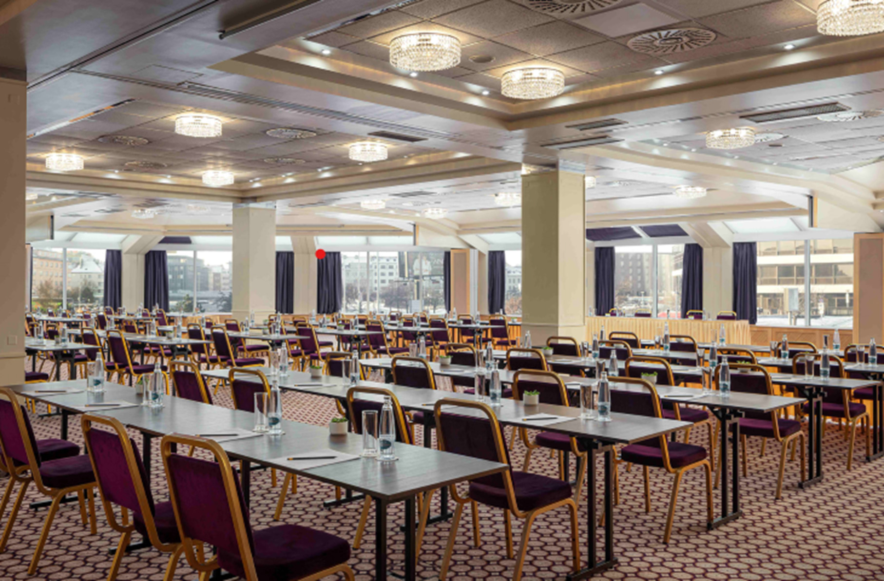 Hotel disponuje 25 flexibilními konferenčními prostory, které lze upravit dle potřeb vaší akce. Chloubou hotelu je sál Bellevue ve 24. patře, odkud se otevírá dechberoucí výhled na panorama města – od Pankráce po Hradčany a Národní muzeum.